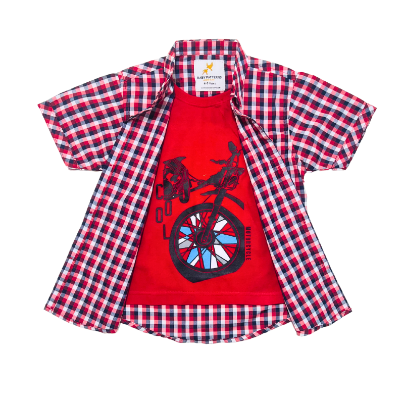 Boys’ Causal Short Sleeve double Shirt – checkered pattern T-Shirt